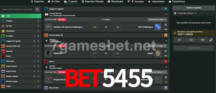 O bet5455 oferece uma grande seleção de opções de apostas em e-sports com probabilidades competitivas
